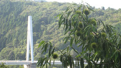 昨日から早朝と夕方ここの草刈りです。まだ終わっていませんが。10月の上旬の収穫を楽しみに頑張ります。弥栄大橋をバックに今のがんね栗です。