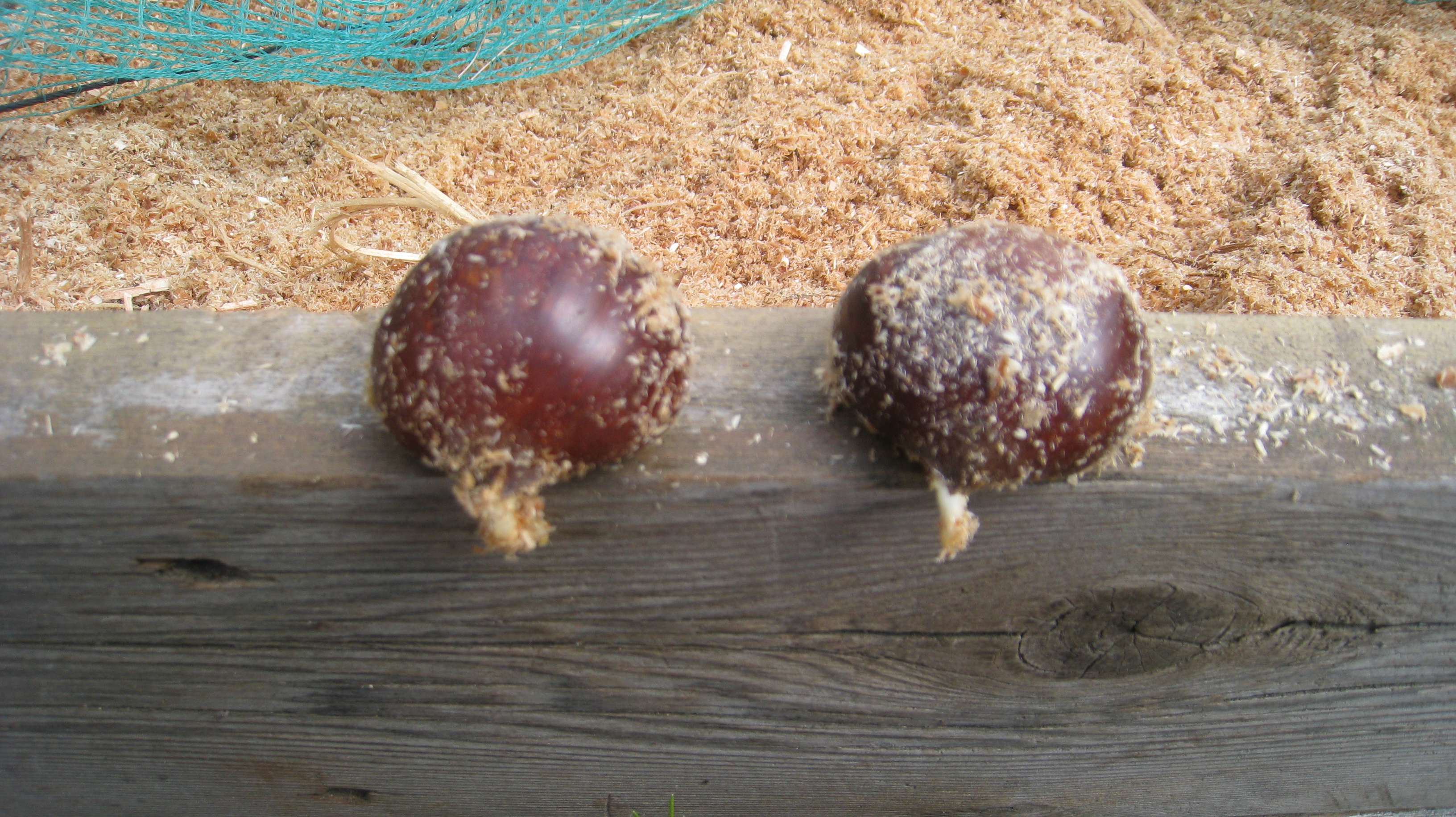 ブログ 2019年04月 荒廃地に 長い間、田が放置され荒廃していた所を草刈りをして、がんね栗の実を植えました。 野兎や野ネズミなどの小動物対策で回りを囲うために、ウッドデッキの廃材を使用。 上にはネットをしました。 2019/04/01 新年度 今日から新年度。新規一転精進します。 年度末の3月はいろいろと。昭和20年3月13日は吉永小百合さん、14日は栗原小巻さん、そして15日はワ・タ・シの誕生日。その前後に栗林で作業中に鉈で左手親指に怪我、腎盂腎炎で入院など。 氷温貯蔵のがんね栗も春で動き出してこのように根が出てきました。 2019/04/01
